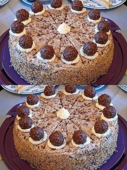 ingredienti 1 base torta (base biscotto viennese, più leggera, più alta, 3 parti) 4 tazze di panna 2 Punti Pasticceria (Ferrero Rocher) preparazione Tenete da parte 6 pezzi di Rocher per la decorazione. Metti il rocher rimanente in una ciotola e trita. Montare 3 tazze di panna a neve e mescolare con la miscela Rocher. Dividete … Read more