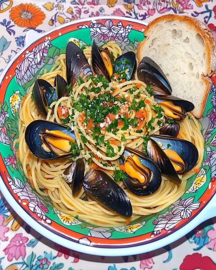 Linguine con aglio, olio, cozze e pepe alla tarantina